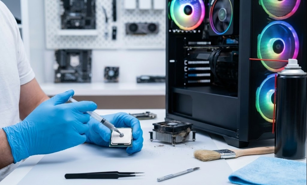 Nhiệt độ là "sát thủ" làm giảm xung nhịp linh kiện (Thermal Throttling). Một bộ PC đồ họa bám đầy bụi bẩn sẽ không bao giờ đạt được tốc độ render như kỳ vọng. Hãy dành thời gian mang máy đến Hoàng Long Computer để được vệ sinh chuyên nghiệp. Chúng tôi sử dụng các loại keo tản nhiệt cao cấp nhất để đảm bảo CPU và VGA của bạn luôn mát mẻ. Đây là một phần trong cam kết bảo hành tận tâm của chúng tôi dành cho khách hàng.