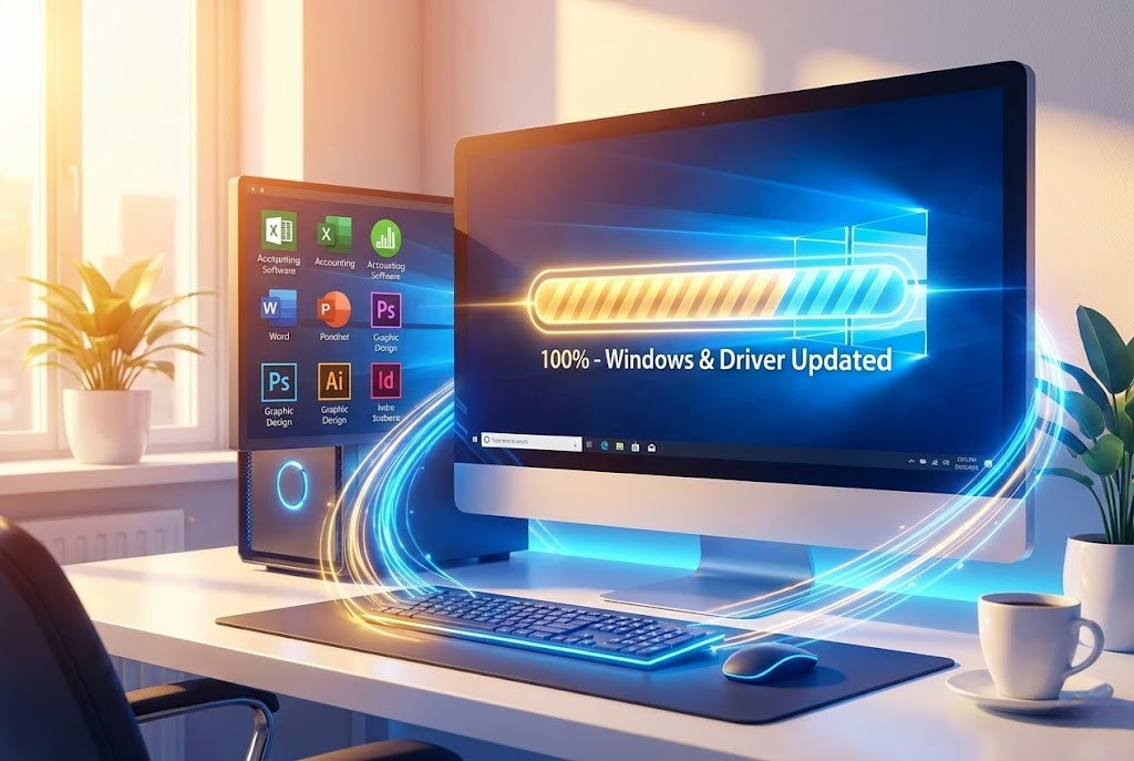 Đừng bỏ qua các bản cập nhật từ Microsoft. Các bản vá lỗi không chỉ bảo mật mà còn tối ưu hóa tương thích phần cứng, giúp máy tính văn phòng xử lý các phần mềm kế toán, đồ họa cơ bản mượt mà hơn.