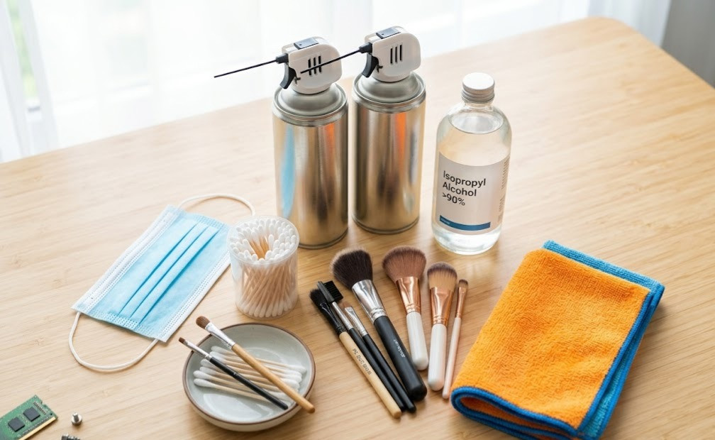 Khăn Microfiber: Dùng để lau sạch bề mặt vỏ case hoặc các khu vực bụi bám thành lớp đặc mà khí nén không thổi bay hết.