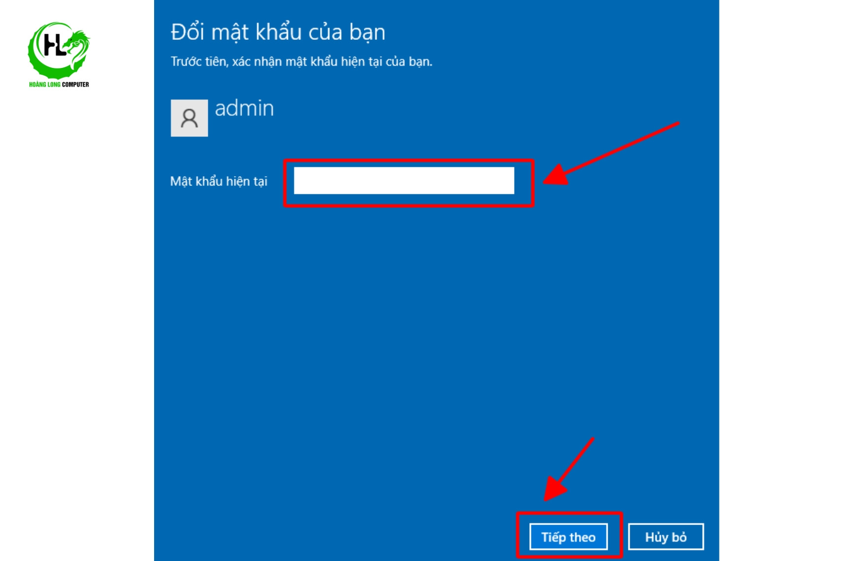 Bước 5: Nhập mật khẩu hiện tại đang sử dụng rồi chọn Next để xác minh.