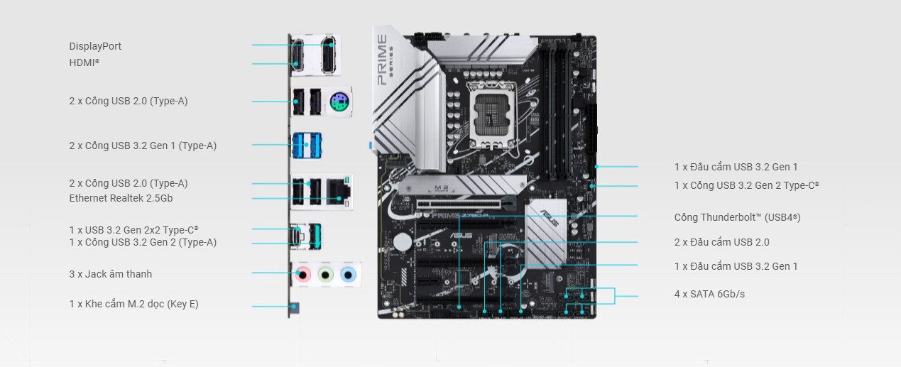 Các cổng I/O phía sau của ASUS PRIME Z790-P-CSM DDR5 bao gồm: