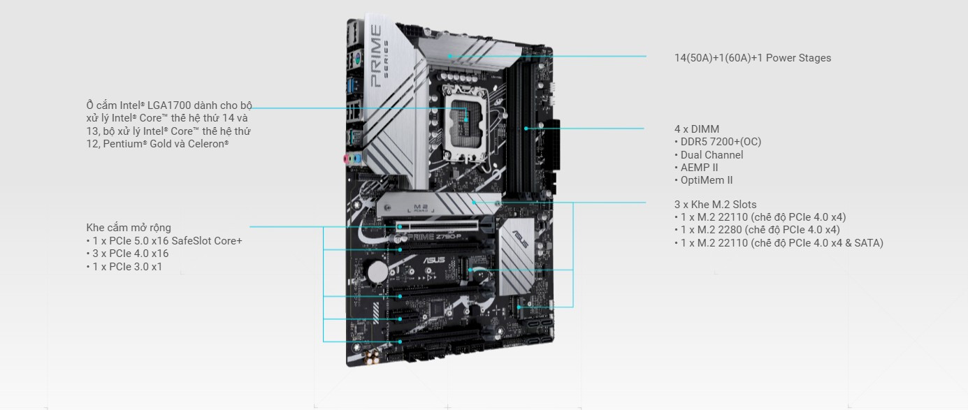 ASUS PRIME Z790-P-CSM DDR5 được trang bị các khe cắm mở rộng sau: