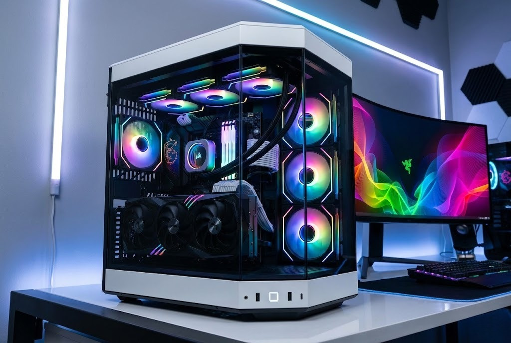 Điểm nhấn lớn nhất của dòng PC Gaming này chính là vỏ case kính cường lực tràn viền, cho phép bạn quan sát toàn bộ nội thất bên trong từ nhiều góc độ. Các linh kiện máy tính được sắp xếp tinh tế, kết hợp cùng hệ thống quạt tản nhiệt vô cực tạo nên hiệu ứng ánh sáng huyền ảo. Tại Hoàng Long Computer, chúng tôi tối ưu từng đường đi của dây nguồn để đảm bảo máy không chỉ đẹp mà còn cực kỳ gọn gàng, chuyên nghiệp.