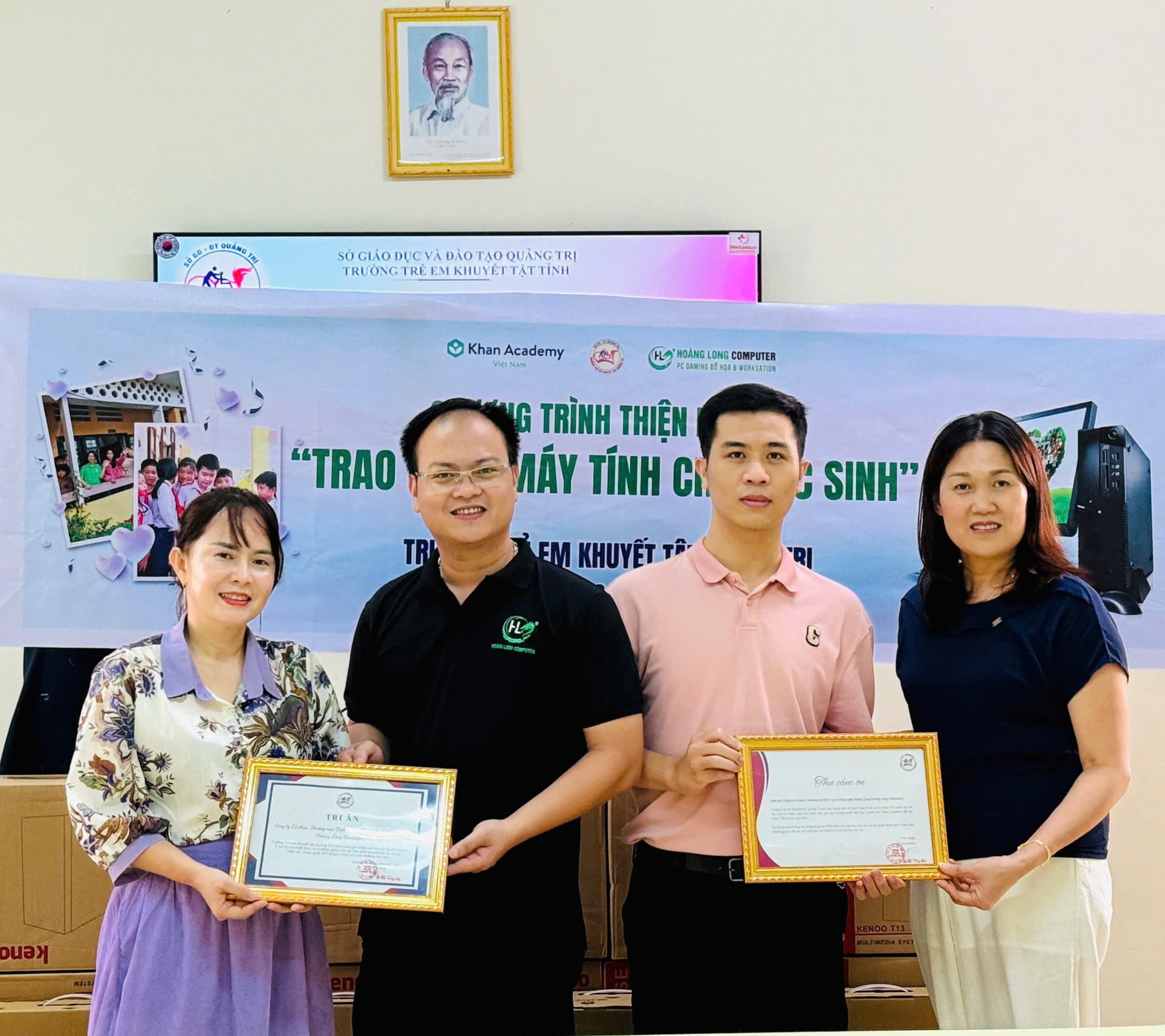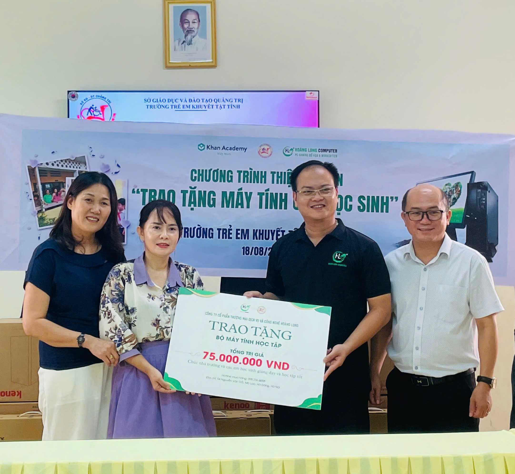 Với các em học sinh tại Trường Trẻ em Khuyết tật Quảng Trị, việc tiếp cận công nghệ thông tin không chỉ là một nhu cầu, mà còn là một cánh cửa mở ra thế giới tri thức rộng lớn. Hiểu được điều đó, Hoàng Long Computer, cùng với sự đồng hành của Khan Academy Việt Nam, đã quyết định trao tặng những bộ máy tính hiện đại, được tối ưu hóa để phục vụ cho việc học tập và phát triển kỹ năng của các em.