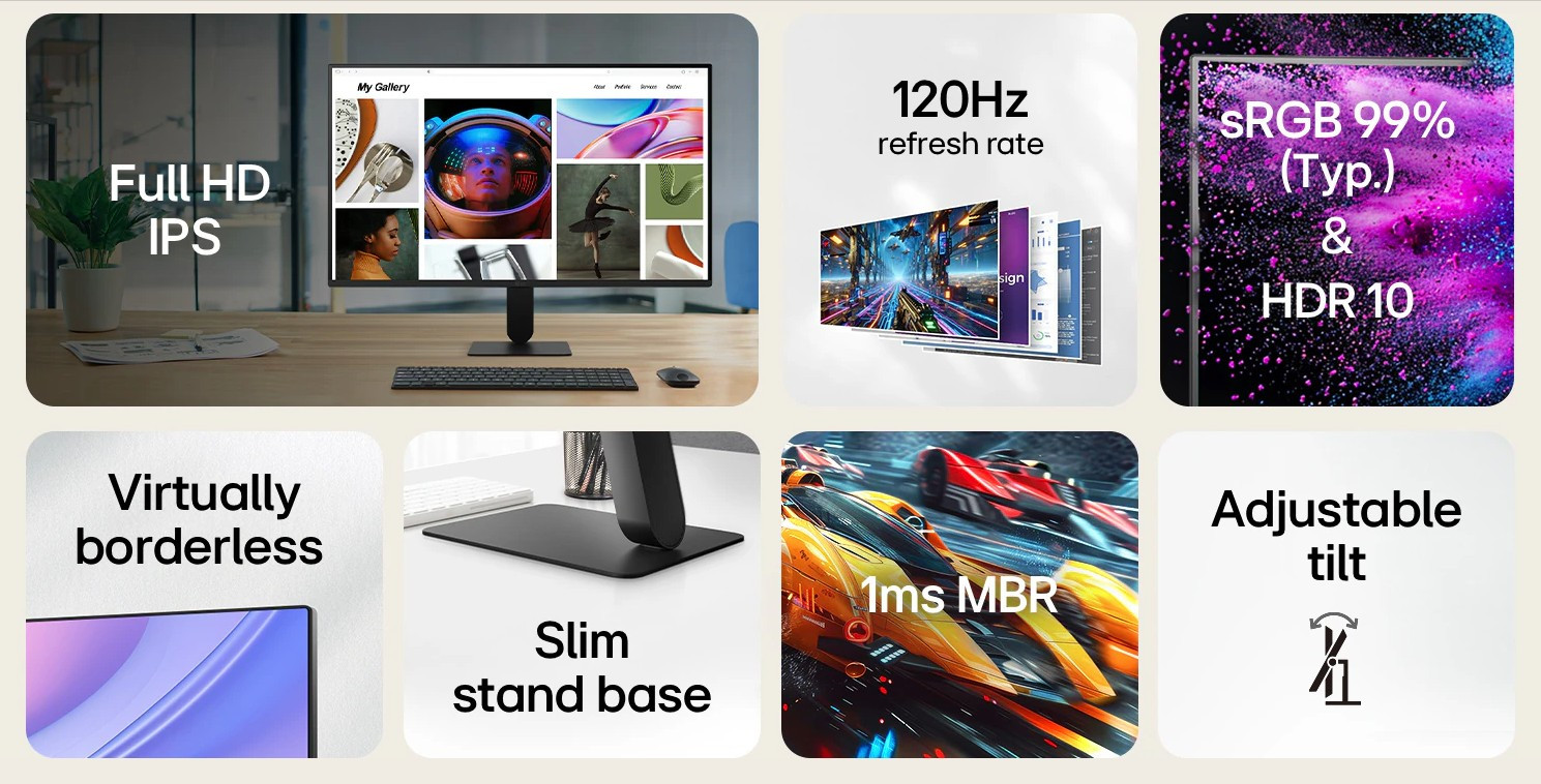 - Tần số quét 120Hz và thời gian phản hồi nhanh cho trải nghiệm mượt mà.