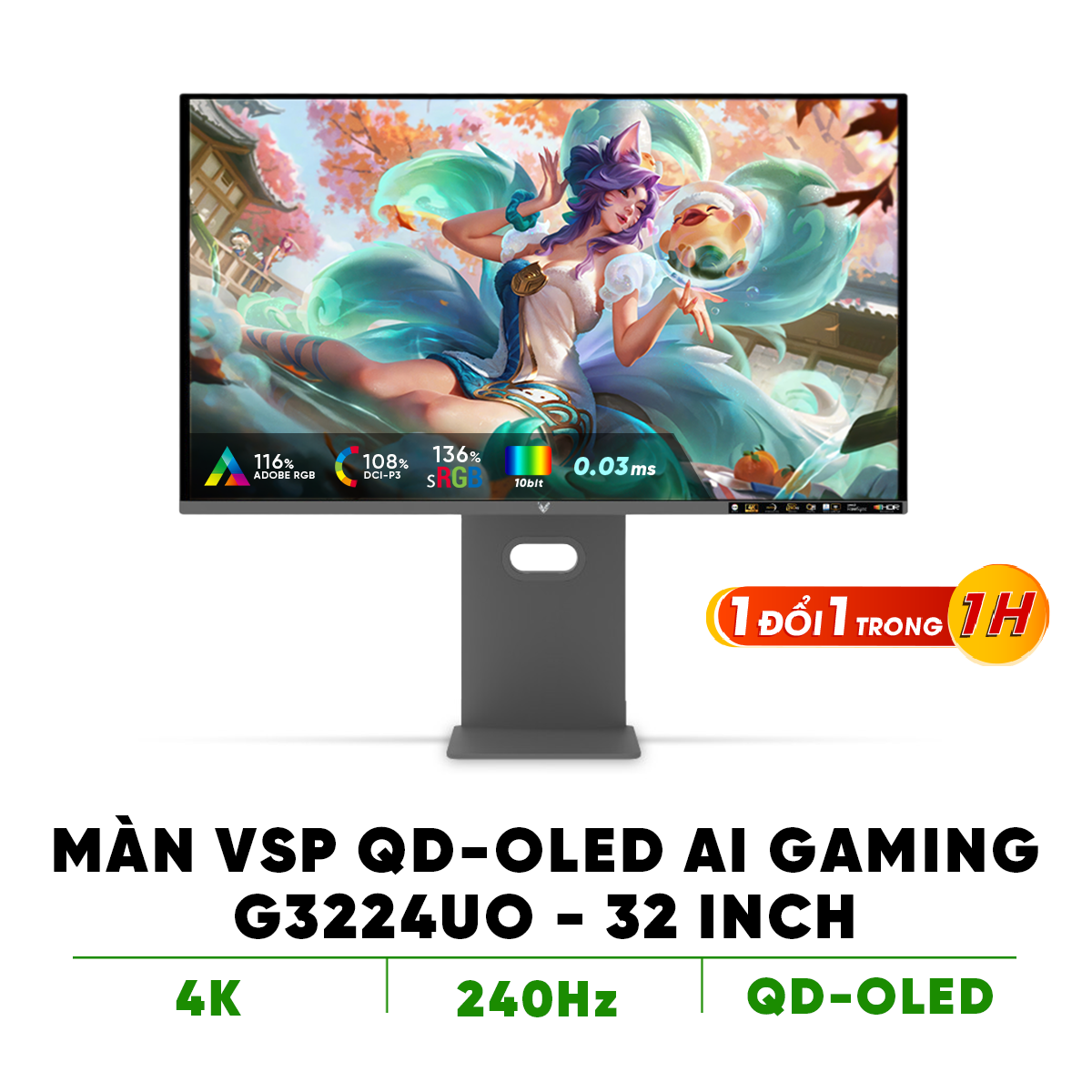 | Tính năng đặc biệt | 1. Color Temp.(cold/warm/user) 2. Low blue color control 3. Navigation button 4. Multi-language Menu 5. FreeSync; Adaptive sync, G-sync 6. FPS/RTS Gaming mode switch 7. ∆<2 8. True 10-bit 9. Response time 0.03ms 10. DCI-P3 108% 11. HDR True Black 400 12. Support PS5 4K2K 120Hz 13. Update firmware via USB downstream 14. PIP/PBP 15. KVM 16. Hardware blue light 17. AI gaming |
