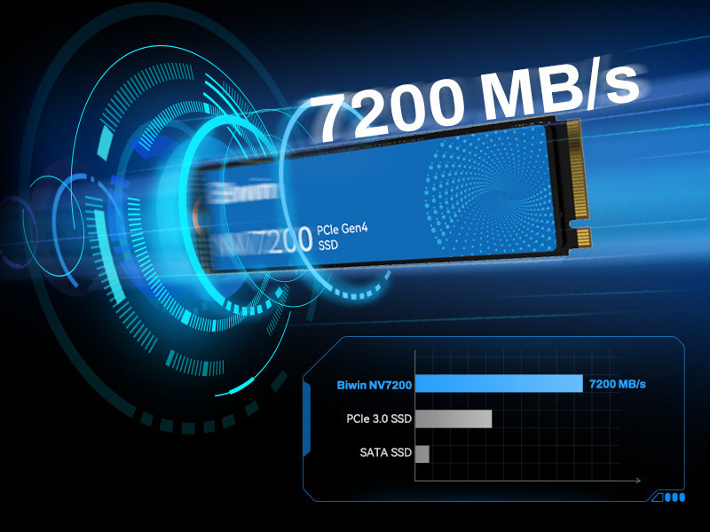 Sử dụng NVMe 2.0 và giao diện PCIe Gen4x4, NV7200 mang đến tốc độ đọc lên đến 7200 MB/giây và hiệu suất đọc/ghi ngẫu nhiên lên đến 1000K/800K IOPS. Hiệu suất này giúp bạn xử lý tốt hơn các tác vụ hàng ngày cũng như đáp ứng nhu cầu xử lý dữ liệu chuyên sâu của AI và các ứng dụng ngốn dữ liệu khác.
