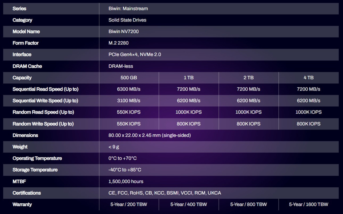 NV7200 được trang bị công nghệ HMB (Bộ đệm Bộ nhớ Máy chủ) và Bộ nhớ đệm Thông minh (Smart Cache) cho năng suất liền mạch. Với tính năng Nén Dữ liệu ZIP, NV7200 đảm bảo truyền dữ liệu nhanh chóng và chính xác, tối ưu hóa hiệu suất ghi.