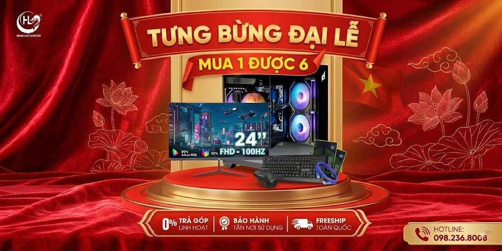 Mừng đại lễ Giỗ Tổ Hùng Vương và 30/4, đây chính là thời điểm vàng để các game thủ nâng cấp "góc chiến lược" của mình. Nắm bắt được nhu cầu đó, chúng tôi tự hào mang đến siêu chương trình khuyến mãi chấn động thị trường: TƯNG BỪNG ĐẠI LỄ - MUA 1 ĐƯỢC 6 - BUILD PC GAMING TẶNG NGAY MÀN HÌNH ĐỈNH.